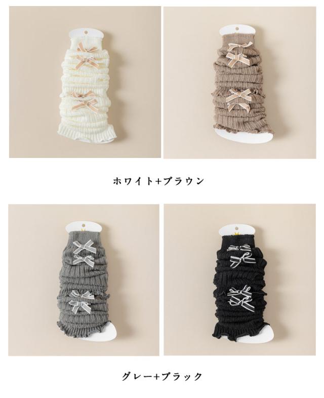 | 「ダブルリボンレッグウォーマー 2足セット」 サイドにあしらわれたダブルリボンが可愛いコーディネートのポイントアイテムになるレッグウォーマー。 柔らかくチクチクしないリブニットを使用し、膝下で留まるリブデザインになっており履く位置を調節していただけます。 裾周りが広いので厚底シューズなどボリュームのあるアイテムにも合わせやすくなっています。 | |