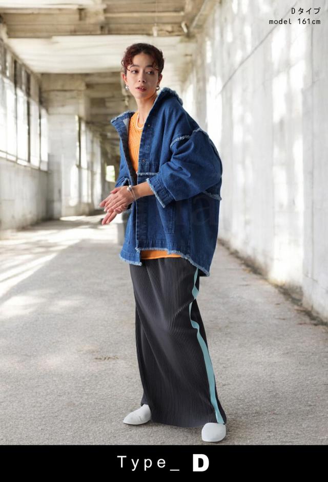 絶妙配色『デニムジャケット×ラインプリーツスカート』