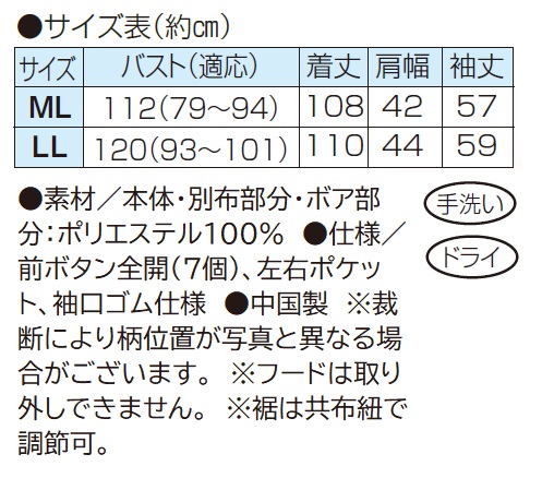 ●素材/本体・別布部分・ボア部分:ポリエステル100%