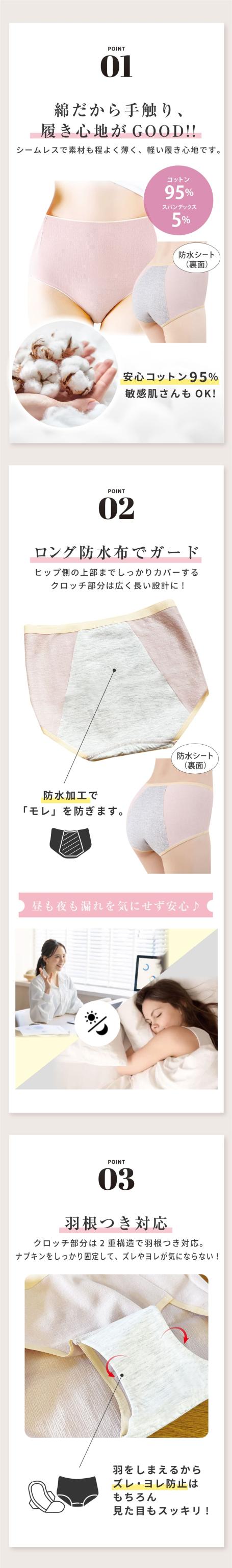 [3枚セット]羽根つき対応 防水布 サニタリー ハイウエスト ショーツ シームレス 下着 パンツ シンプル レディース 綿 コットン ひびかない パンティー ランジェリー 上品 ノーライン 締め付けない 普段使い パンティライン ドレス スーツ パンツスーツ リノウル