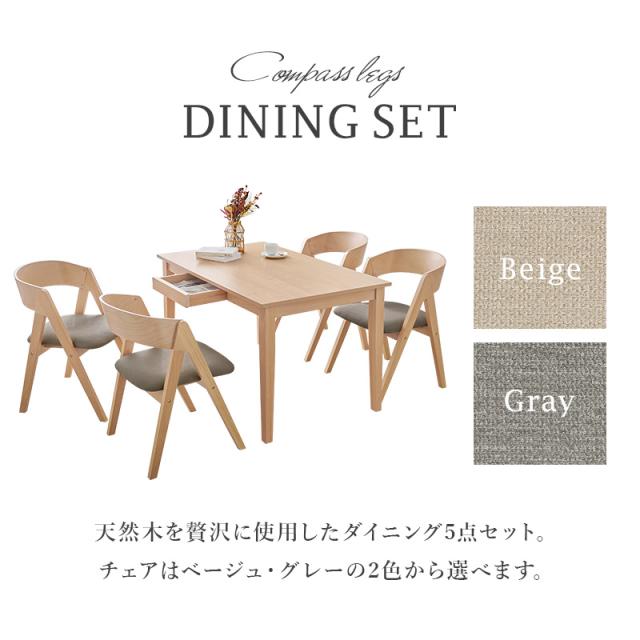 ダイニングテーブルセット 4人掛け 5点セット 引き出し付き ダイニングセット MI-861037-5S 2色対応 ダイニングテーブル 長方形 幅120cm ダイニングチェア 4脚 おしゃれ 天然木 ナチュラル 食卓 北欧