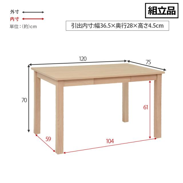 テーブル:約 W120 x D75 x H70cm