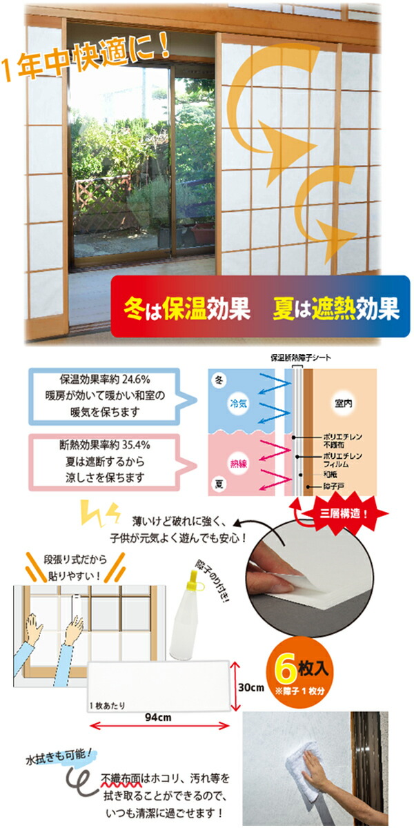 テクノエイム 保温断熱障子シート 94×30cm 6枚入り 障子紙 断熱 破れにくい