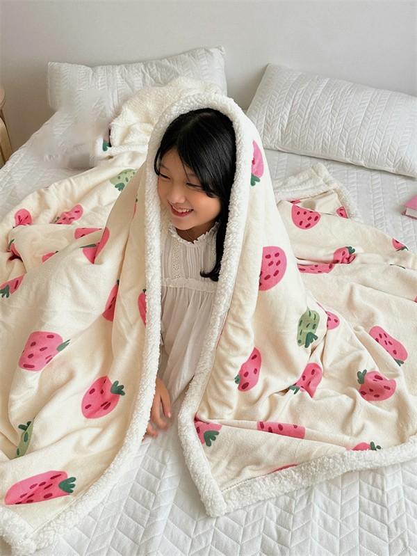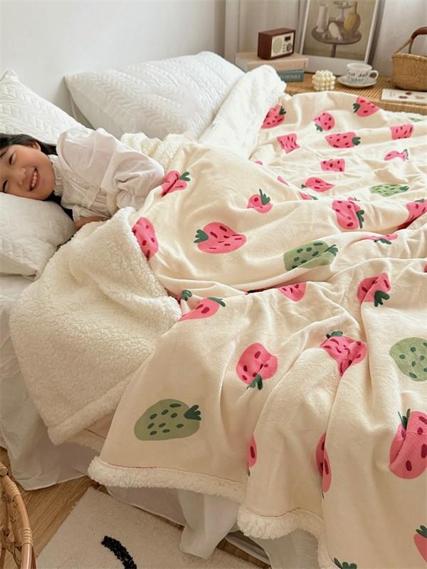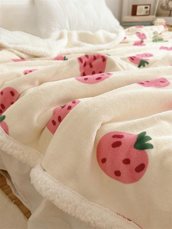 ブランケット 2枚合わせ 毛布 シングル 苺柄 イチゴ柄 ダブル 大判 あったか 暖かい 秋冬 冬用 合わせ毛布 ふわふわ もこもこ マイクロファイバー 掛け毛布 洗える お昼寝 ベッド ソファー 膝掛け カバー ひざ掛け インテリア 寝具 マルチカバー ピンク