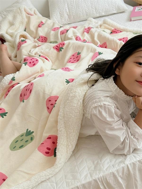 ブランケット 2枚合わせ 毛布 シングル 苺柄 イチゴ柄 ダブル 大判 あったか 暖かい 秋冬 冬用 合わせ毛布 ふわふわ もこもこ マイクロファイバー 掛け毛布 洗える お昼寝 ベッド ソファー 膝掛け カバー ひざ掛け インテリア 寝具 マルチカバー かわいい ピンク k8016d7d7m5