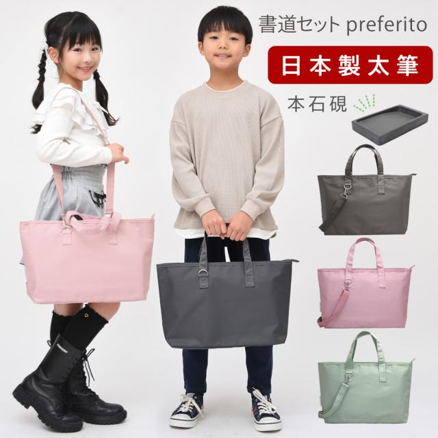 本石硯 書道セット 小学生 男の子 女の子 日本製 特製太筆 習字セット preferito くすみカラー グレー/ピンク/グリーン