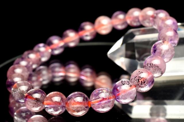 【1点物】AA+☆華やか ピンクスーパーセブンアメジスト 7.5mm ブレスレット 金運・仕事運【送料無料】_M4263