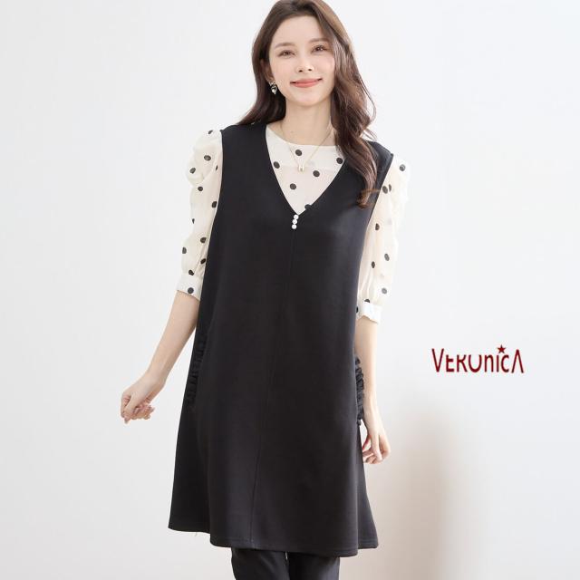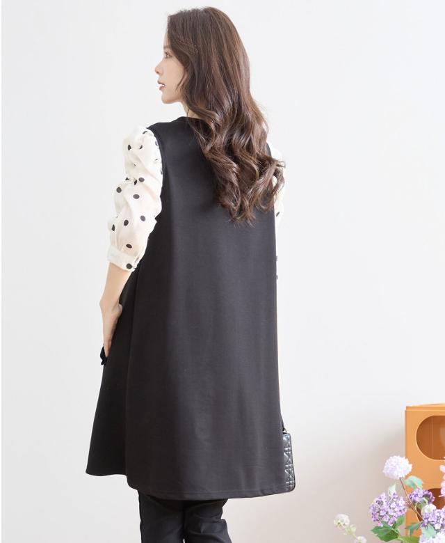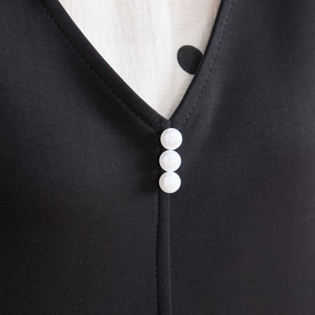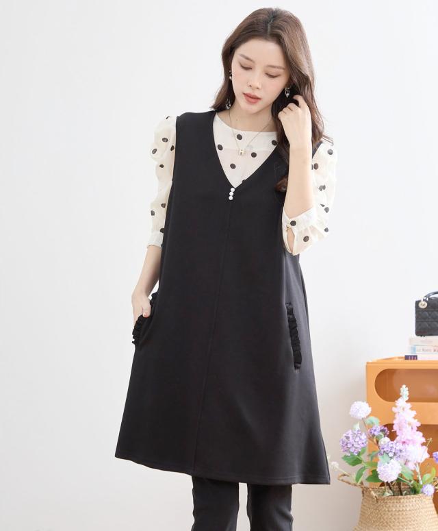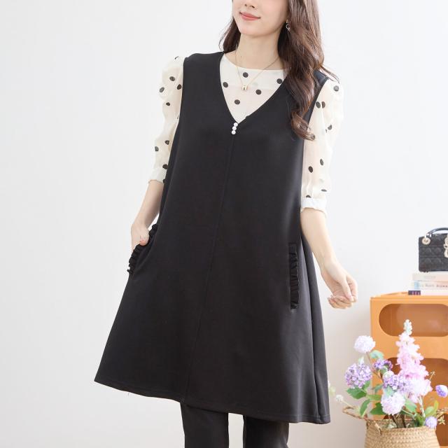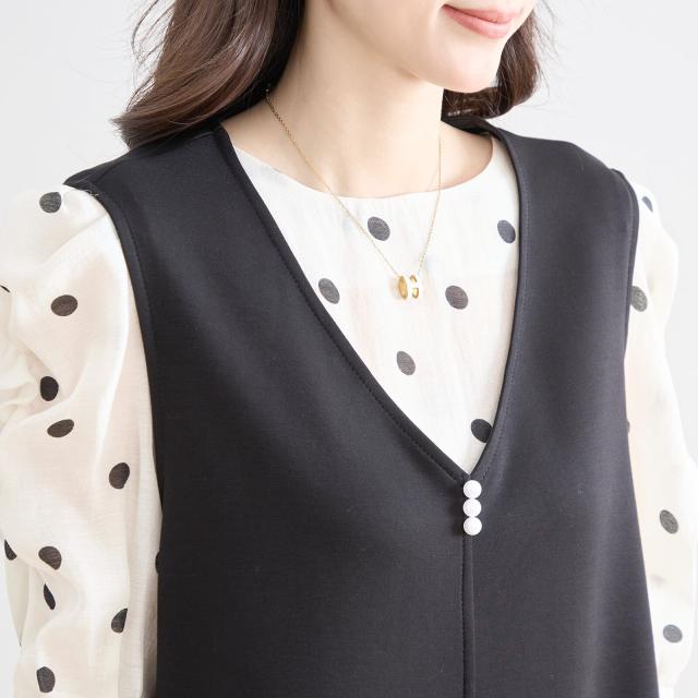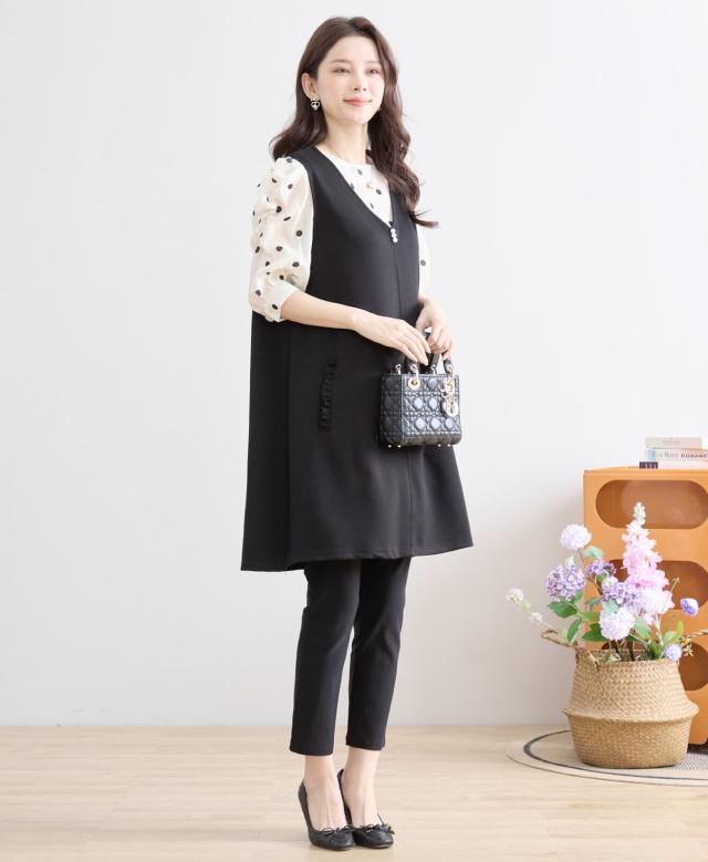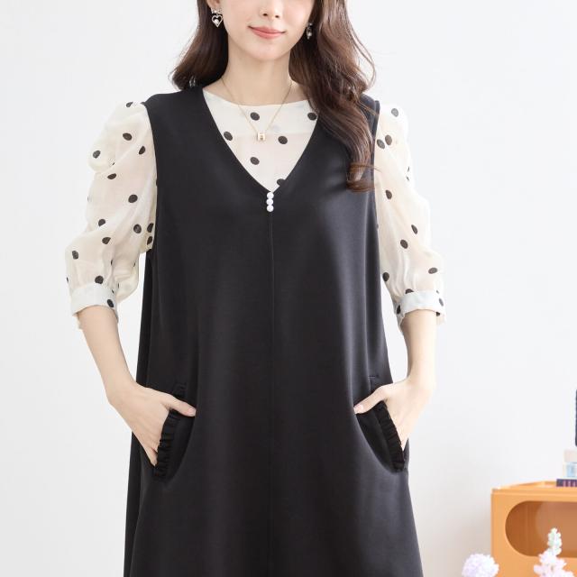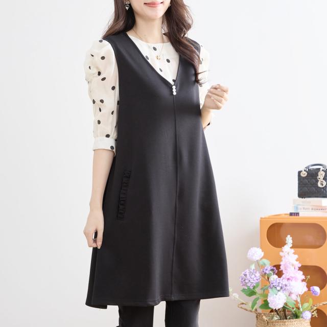 【即納】ポイントパールVネックチュニックワンピース 膝下丈 体型カバー AW 秋冬 春 新作