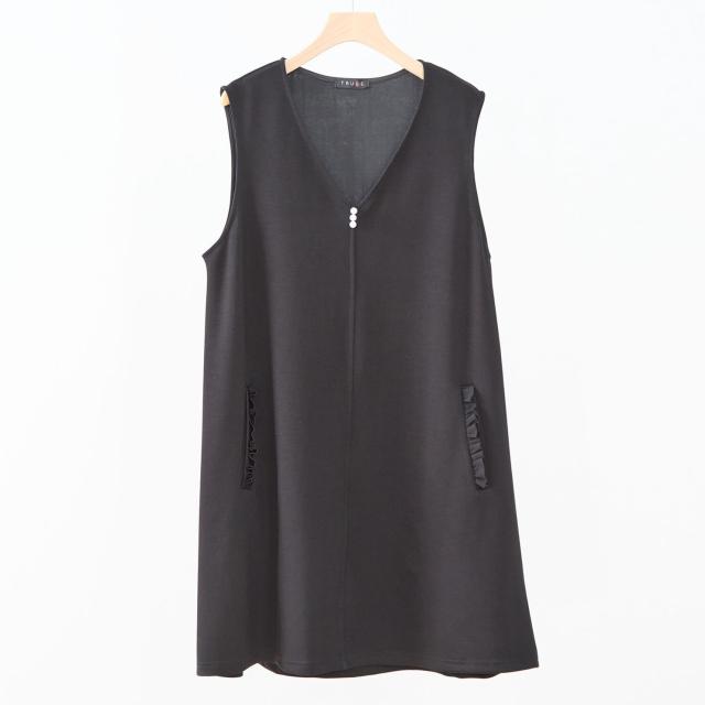 トレンドを抑えたVネックのジャンパースカートは、シンプルながらもスタイリッシュなデザインが魅力。ポイントのパールモチーフが華やかな印象をプラスし、ポケットのフリルディテールがさりげないアクセントに。パンツやタイツを合わせれば、秋冬も快適な着こなしを楽しめます