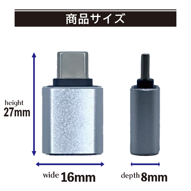 USB-A【メス】をType-C【オス】に変換するアダプタです。