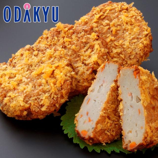 じゃこ天のすり身にタマネギとニンジンを加えてパン粉を付けてコロッケ風にしています。