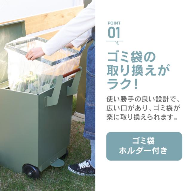 ゴミ袋ホルダーや水抜き穴、ゴムキャップを装備し、使い勝手も抜群。