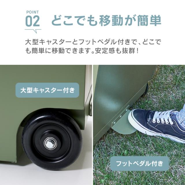 大型キャスターとフットペダル付きで、満杯時でもスムーズに移動できます。
