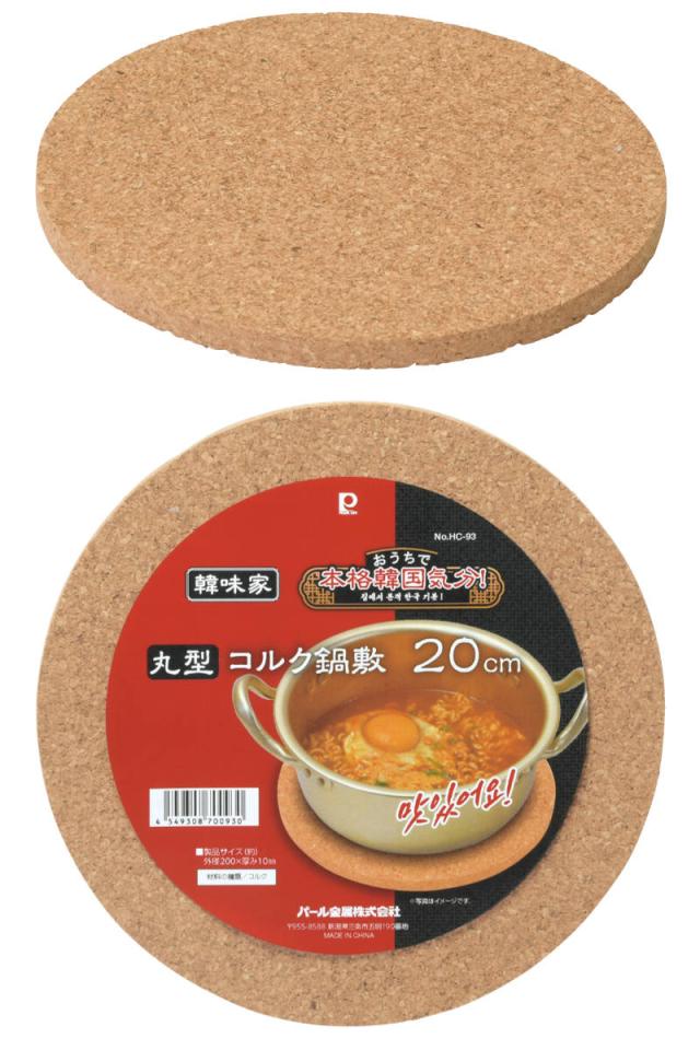 おうちで韓国気分が味わえる韓味家シリーズの丸型コルク鍋敷きです。チゲ鍋やラーメン鍋を食べる時に敷くだけで韓国感があります。表面は滑りにくいので、鍋など上に置いたもののずれを抑えられます。鍋はもちろん、フライパンやグラタン皿にぴったりです。