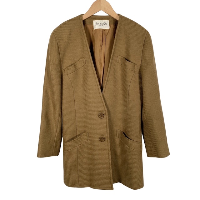 【中古】ジュンアシダ jun ashida ノーカラージャケット ウール100% 長袖 ブラウン 茶色 6 レディース