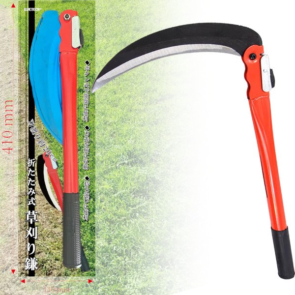 折りたたみ式 草刈り鎌 かま 折りたたみ 刃先収納可能 ボタン式で開閉 便利 農業 草刈 草刈り(代引不可)【送料無料】