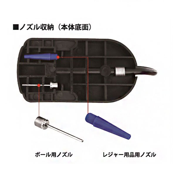 ・付属パーツで各種ボール・レジャー用品の空気入れ可能