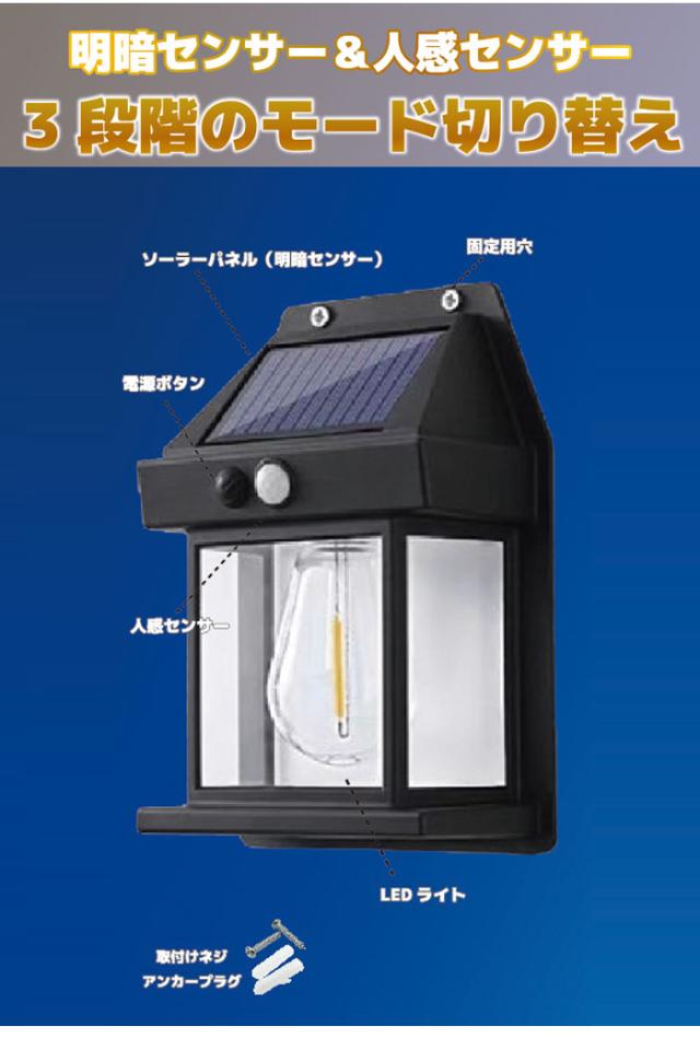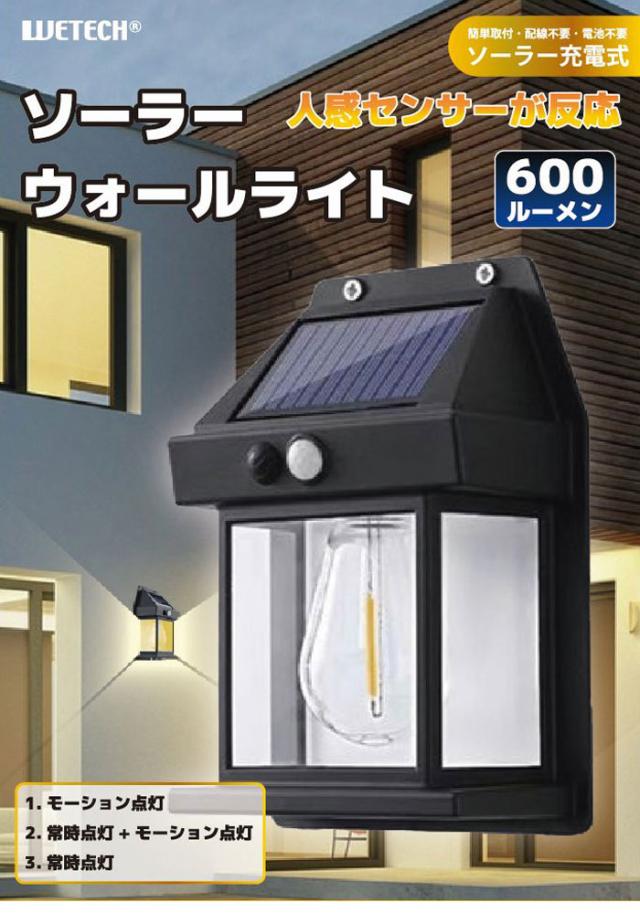 ソーラーウォールライト 人感センサー ソーラー充電式 配線不要 電池不要 簡単取り付け ウォールライト 壁かけ照明 照明 ライト 玄関 屋外(代引不可)【送料無料】