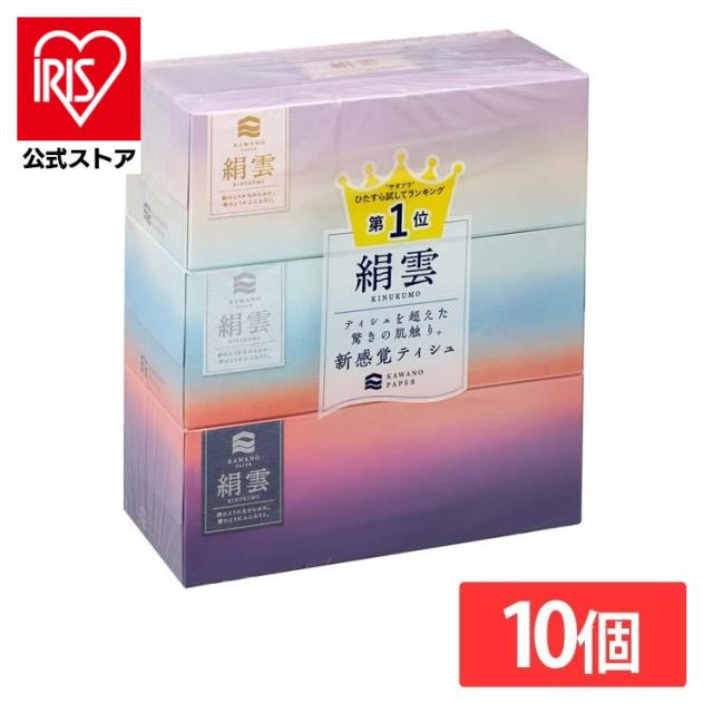 日用消耗品 家庭紙 ティッシュペーパー 【10個】新保湿ティシュ 絹雲BOXティシュ130組(3枚重ね)×3P 221030 河野 絹雲 保湿 ティッシュ ボックス 花粉 風邪 鼻炎 やわらかい 3枚重ね 送料無料