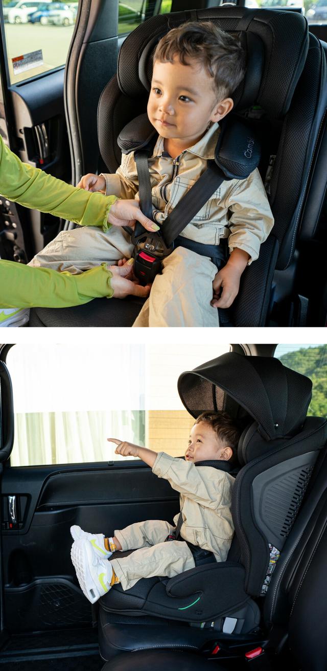 チャイルドシートを選ぶ時の基準は人それぞれ。中でも「子どもと一緒に旅行がしたい」「車内をひろびろ使えるチャイルドシートが欲しい」という人なら、このコンビのジョイトリップ アドバンス premium SCがおすすめです。重さも7.5kgとチャイルド&ジュニアシートの中では軽量で、なんといってもコンパクトで折りたためるのが特徴です。それでいて、子どもの命をしっかりと守ってくれるのだからすごいですよね。日差しを和らげるエアスルーサンシェードや、やわらかい「クッションベルト」に変更になったりと、Premiumになってグレードアップ。車内をひろびろ使えて、乗り心地も快適♪車での旅行がうんと楽しくなるチャイルドシートです。