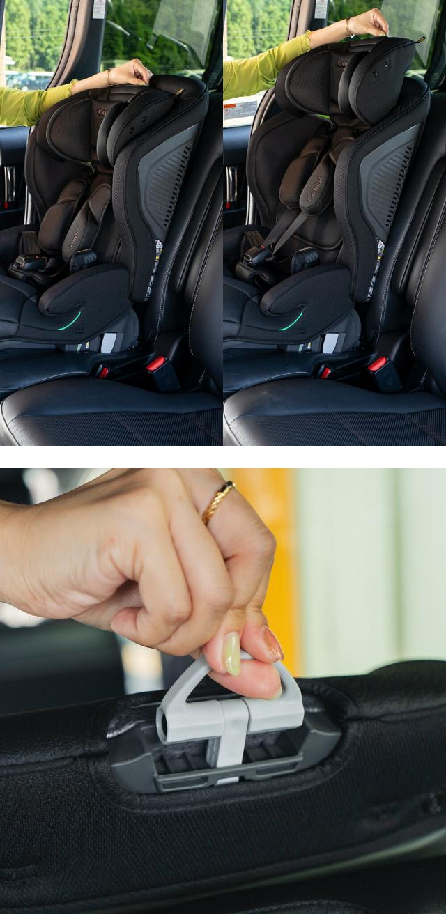 ジョイトリップ アドバンス Premium SCは、身長76cmかつ月齢15ヶ月以上から、身長150cmまで使えるロングユース設計。ヘッドサポートの位置を上下に動かすことでなんと11段階も細かく調節することができるんです。高さの調節はレバーの上下だけなので、難しい操作も必要ありません。