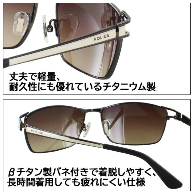 サングラス メンズ ポリス UVカット ブランド POLICE 2025年モデル SPLQ02J 0530 グレー 0B32 ブラウングラデーション 583X ミラーグラデーション チタンフレーム スクエア フルリム かっこいい シャープ 運転用 ドライブ アジアンフィット 男性 国内正規品