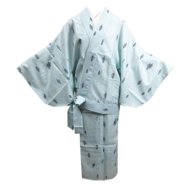 二部式 着物 洗える 袷 薄水色地松枝 L ユニフォーム きもの セパレート 女性用 レディース 和装 和服 和柄 古典柄