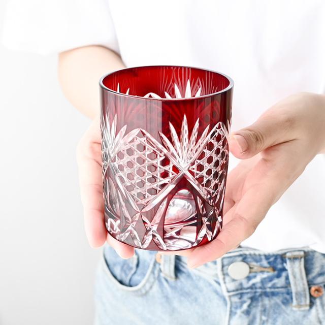 江戸切子 グラス オールドグラス 六角籠目切子 赤 TG98-22-1R ロックグラス キリコ 切子 焼酎グラス おしゃれ ブランデーグラス 還暦 賀寿 長寿祝い 母の日 魔除け 田島硝子 誕生日プレゼント