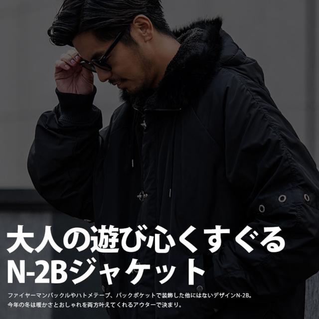 N-2Bジャケット メンズ ブランド おしゃれ 防寒 暖かい アウター ミリタリージャケット フライトジャケット MA-1 ブルゾン 中綿 ボア ファー フード付き 無地 大きいサイズ ブラック 黒 大人 20代 30代 40代 50代 ちょいワル ユニセックス 男性 男 服 秋 冬 秋冬 [CAWI24-42]
