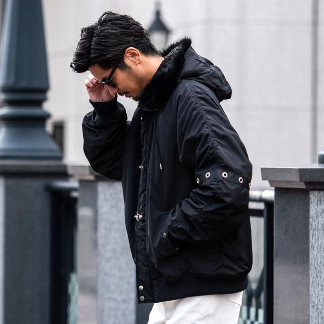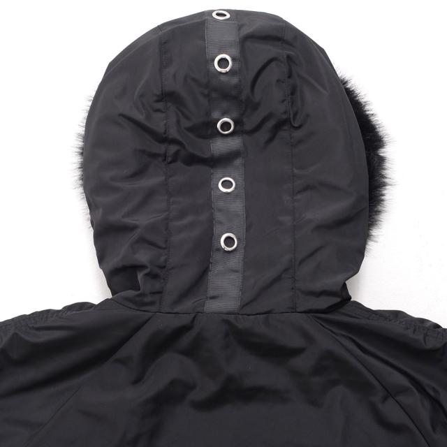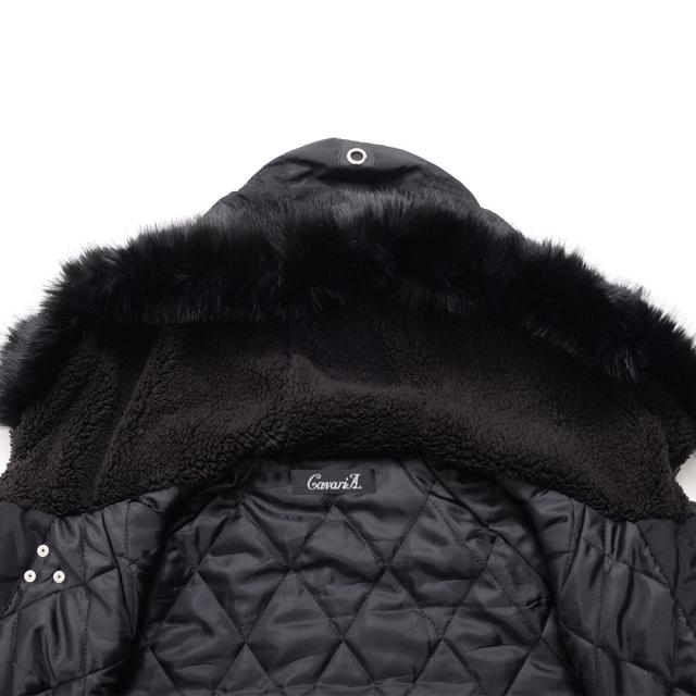 ファー付きのフードはボアの裏地、ボディの内側はキルティングの裏地を採用し非常に防寒性の高い一着。