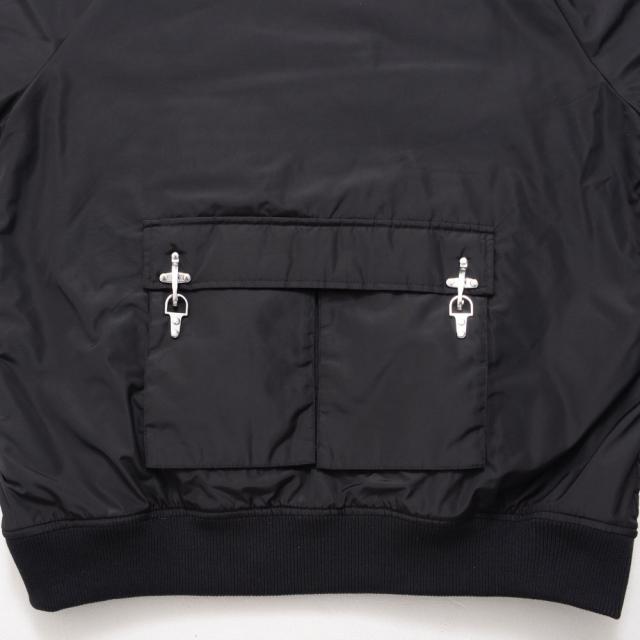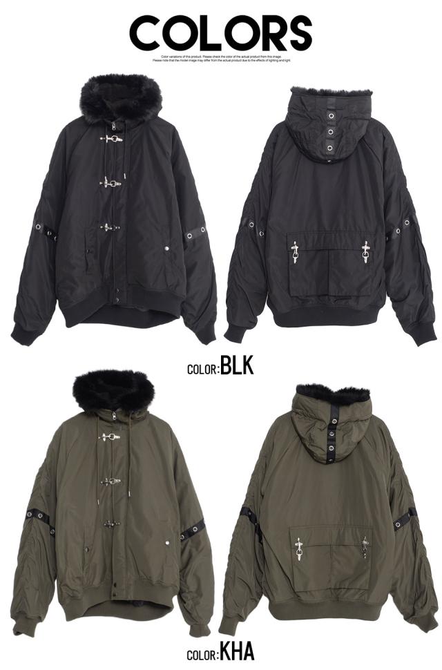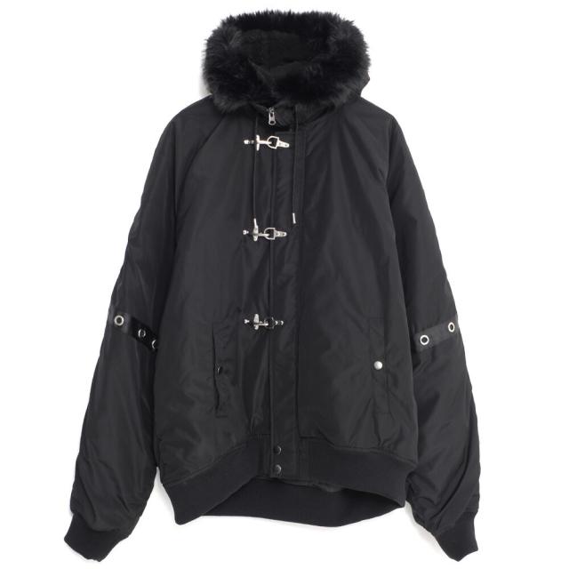 ファイヤーマンバックルや、フードや両袖のハトメテープ、バックポケットをあしらった大人の遊び心くすぐるデザイン。