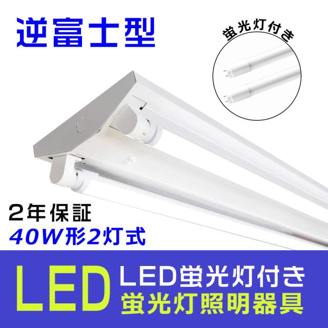 LED蛍光灯 40W形 直管器具 逆富士 40W 2灯 逆富士型照明器具 蛍光灯器具 LED セット 40W形 2灯式 逆富士 LED蛍光灯付き LEDベースライト 40W形 LED蛍光灯器具2灯式 LED蛍光灯付き LED蛍光灯専用照明器具 LED蛍光灯ベース照明 蛍光灯器具 PSE認証 2年保証