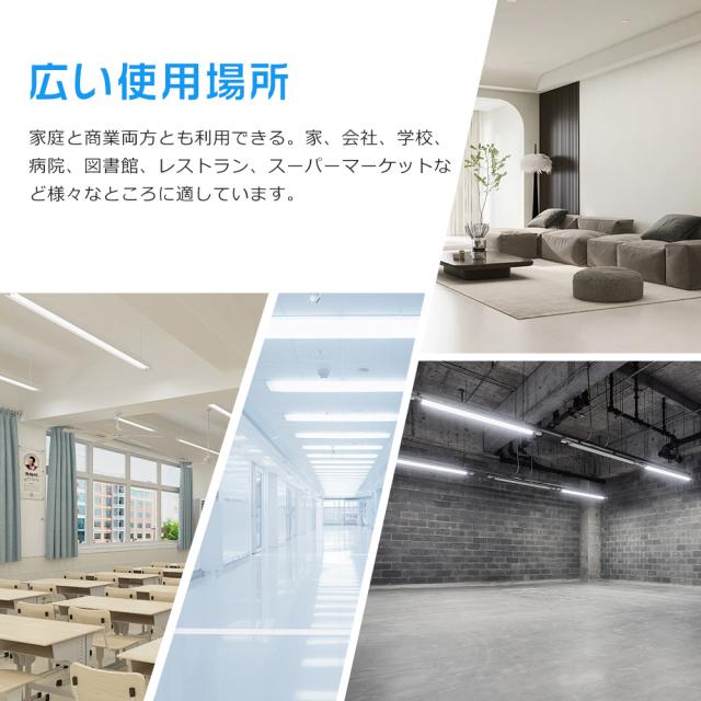 - 家庭用から商業施設、工場など、さまざまな場所に適しています。長時間の照明が求められる環境にも向いています。