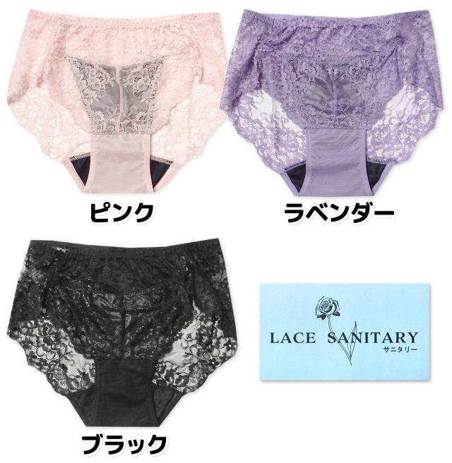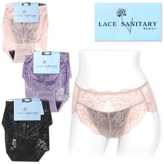 【送料無料】婦人 レディース 総レース サニタリー ショーツ 生理用 羽つき対応 伸縮性 花柄 肌着 下着 インナー M L LL ygf-0020【メール便対応】