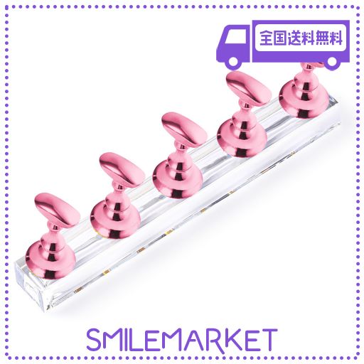 ANNHUA ネイルチップスタンド 磁気 5本セット ネイル台座 ネイル練習台 固定用 ネイルホルダー 持ちやすい ネイルサロン 練習ツール 自宅用 コンパクト ピンク