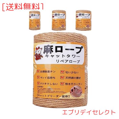 【専門家監修】100M 麻ロープ 麻縄 6mm 麻紐 麻ひも リペアロープ 猫タワー スクラッチャー 爪研ぎ キャットタワー用 爪とぎ 手作り DIY