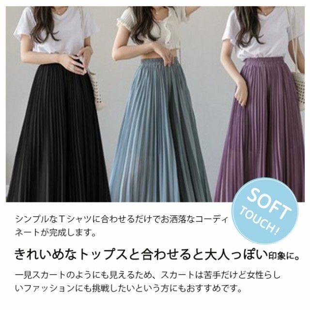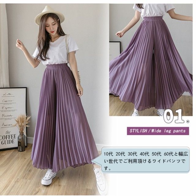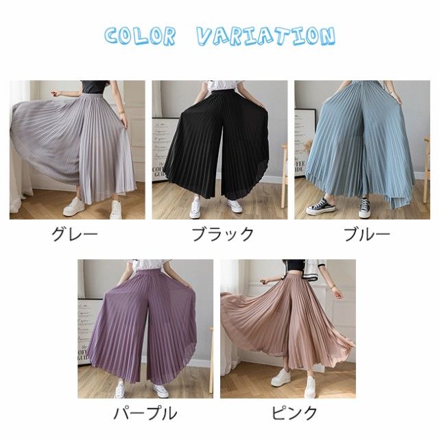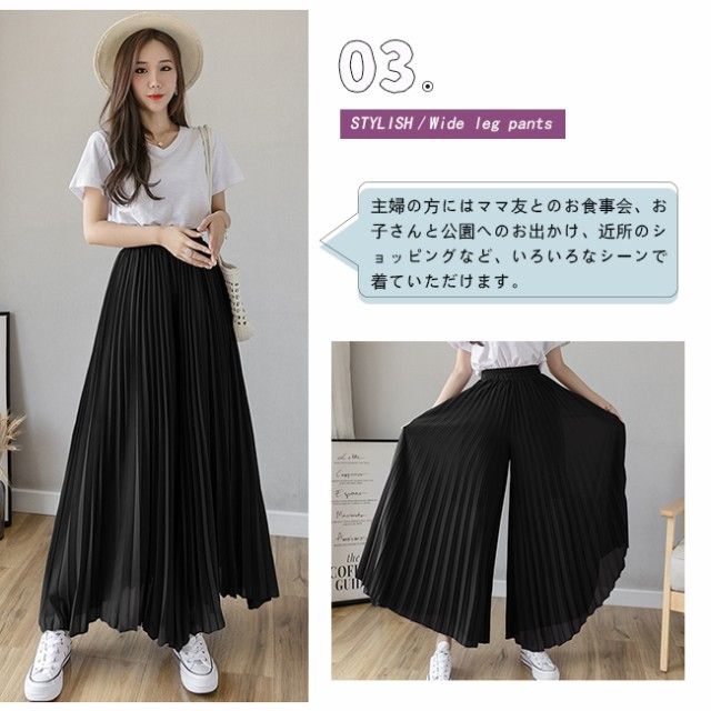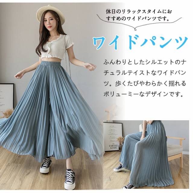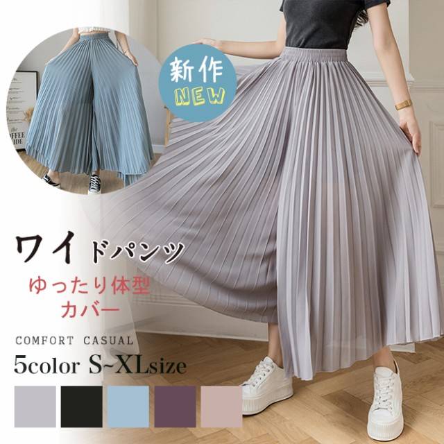 新作 ワイドパンツ シフォン レディース ガウチョパンツ ハイウエスト 無地 ゆったり体型カバー 秋夏秋