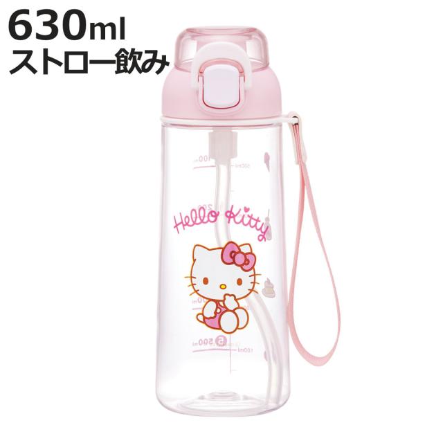 水筒 630ml ワンプッシュストローボトル ハローキティ ( キティ 子供用 プラスチック ストローボトル クリア ワンタッチ 目盛り ストラップ付き 広口 軽量 ストロー ボトル ワンプッシュ )