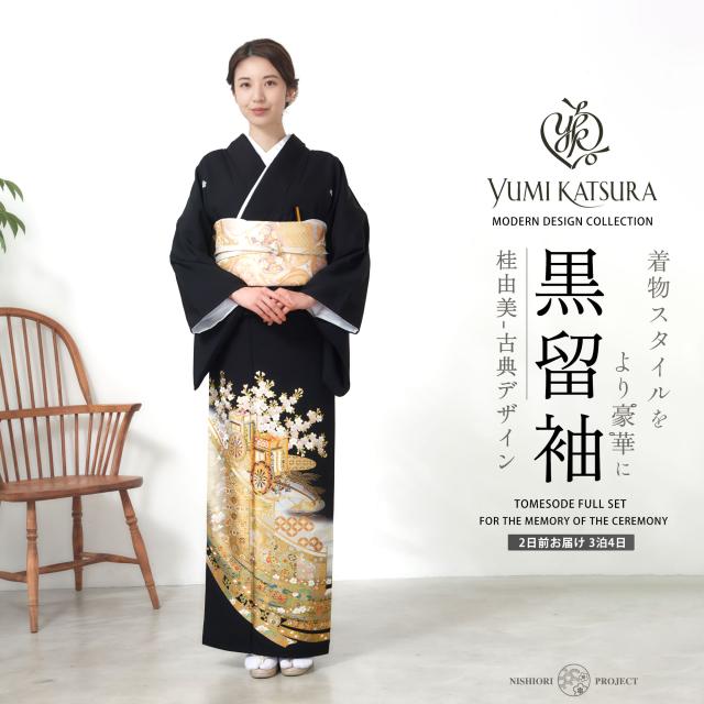 桂由美 黒留袖 フルセット|伝統とモダンが融合した結婚式・フォーマル着物ブランド レンタル 着物セット フルセット【結婚式 婚礼 貸衣装】【往復送料無料】古典 御所車 桜 No.232