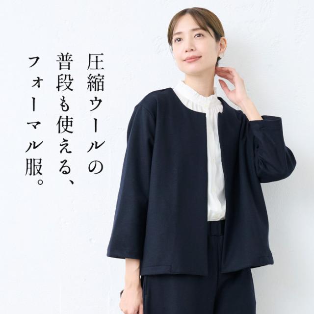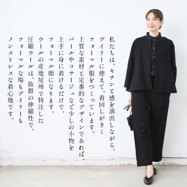圧縮 ウール100% こなれ ジャケット + セミワイド パンツ 2点セット / 日本製 レディース 七五三 母 ママ 30代 50代 60代 スーツ 体型カバー フォーマル セレモニー 暖かい 秋 冬