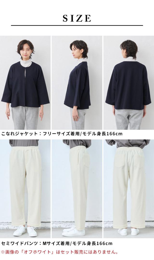 SIZE:こなれジャケット/フリー・LL、セミワイドパンツ/M・L COLOR:ネイビー・ブラック |