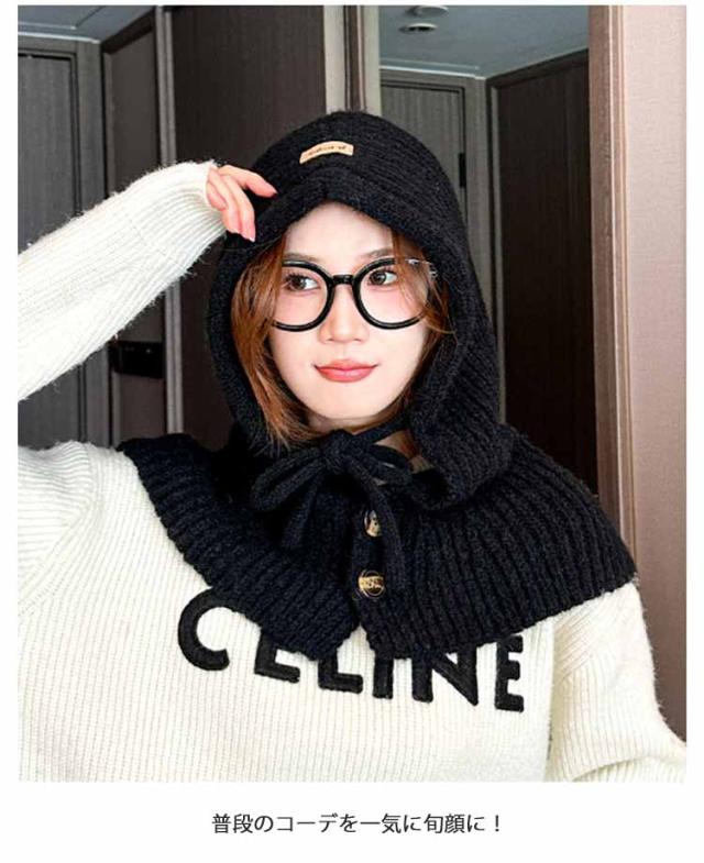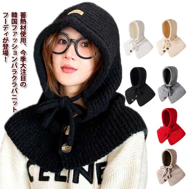 蓄熱材 バラクラバ レディース 目出し バラクラバ ニット 帽子 かわいい ニット帽 ニットバラクラバ 韓国 おしゃれ フード付き ネックウォーマー フードウォーマー あったか 防寒 自転車 暖かい 防寒対策 秋 冬