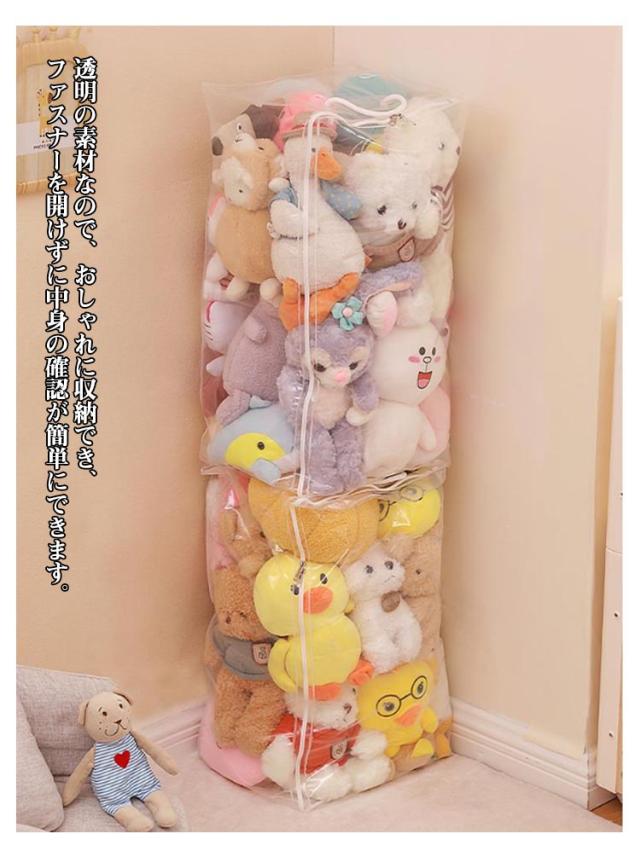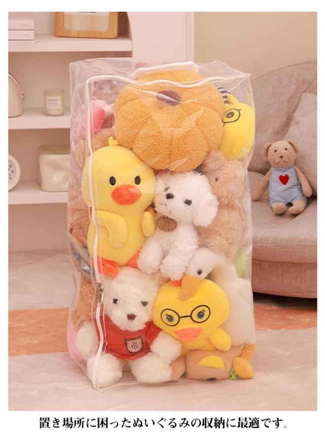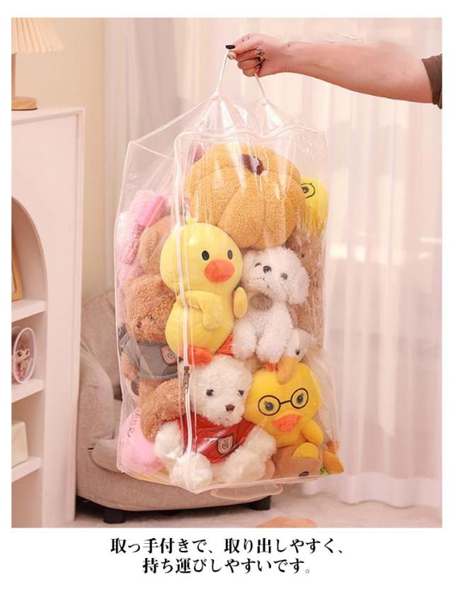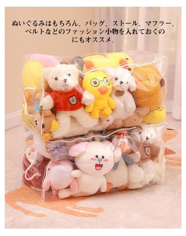 ぬいぐるみ 収納 ベルト付 収納袋 ディスプレイ 防湿 収納ボックス 透明 おもちゃ収納 見せる収納 小物収納 クローゼット収納 防塵 折りたたみ 防カビ ぬいぐるみ 衣類 布団