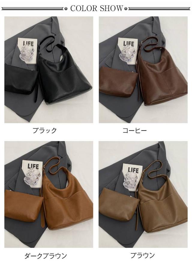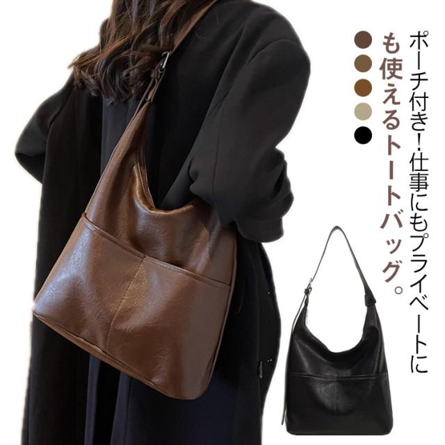ポーチ付き 通勤バッグ カジュアル トートバッグ ショルダーバッグ 鞄 肩掛けバッグ 斜め掛け フェイクレザー 大容量 仕事 トートバッグ 軽いかばん かわいい シンプル 20代 30代 40代 50代