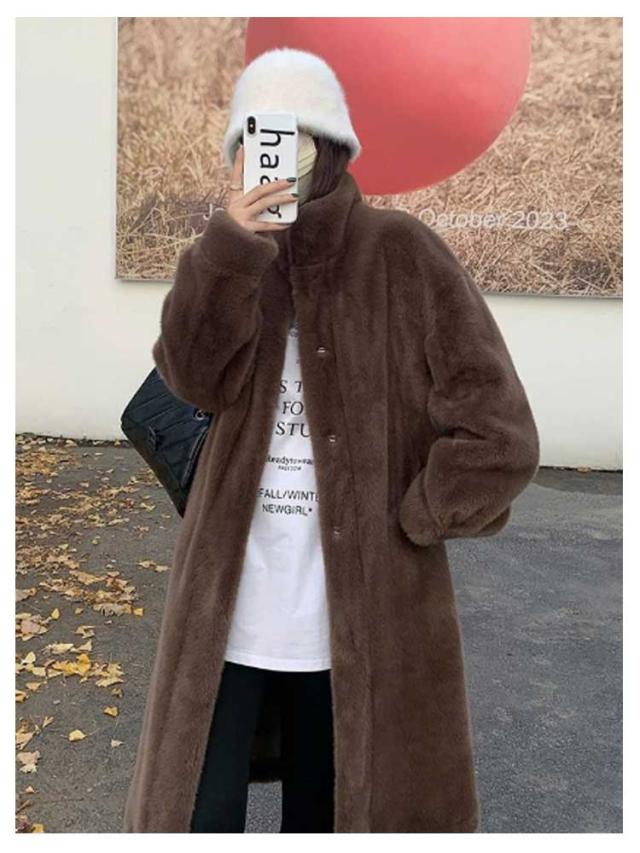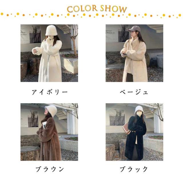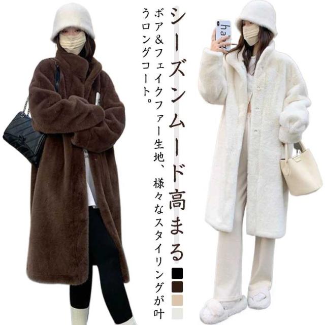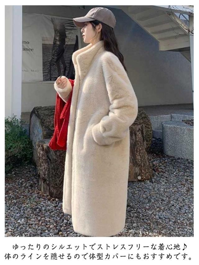 スタンドカラー ファーコート ファーコート ロング丈 フェイクファー 防寒コート アウター ボリュームファー レディース ムートンコート もふもふ 暖かい 防寒 カジュアル 大人可愛い ふんわり もこもこ ふわふわ アイボリー ベージュ ブラウン