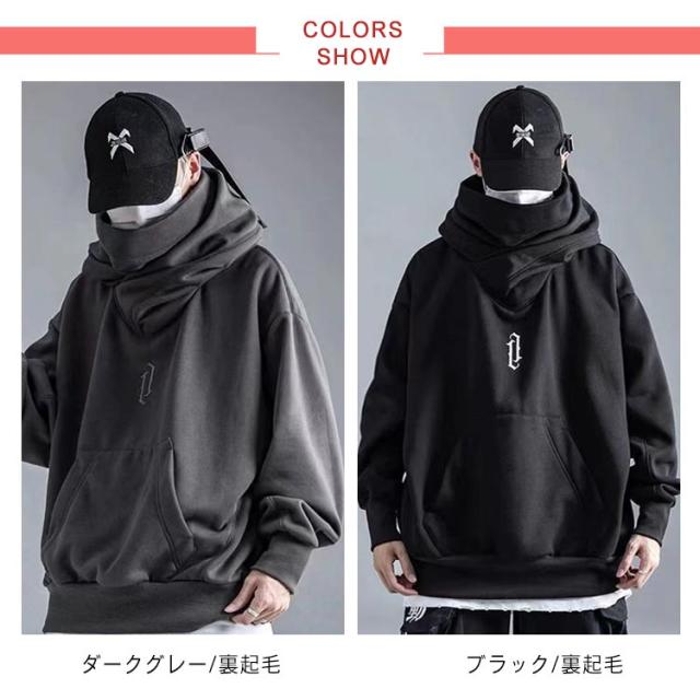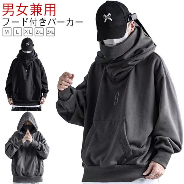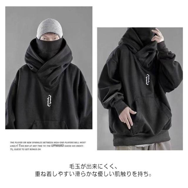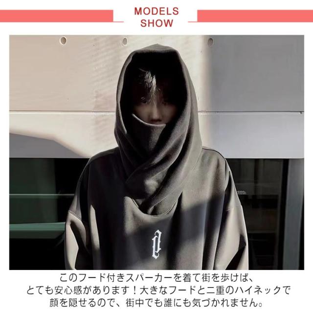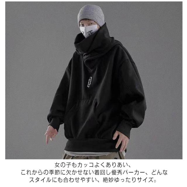 プルオーバーパーカー レディース パーカー メンズ カップル フード付きパーカー お兄系 秋服 ボリュームネックパーカー 無地 スウェット ハイネックパーカー おしゃれ 大きいサイズ プルオーバーパーカー ゆったり 体型カバー