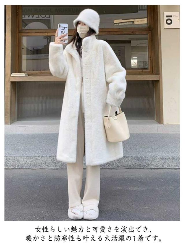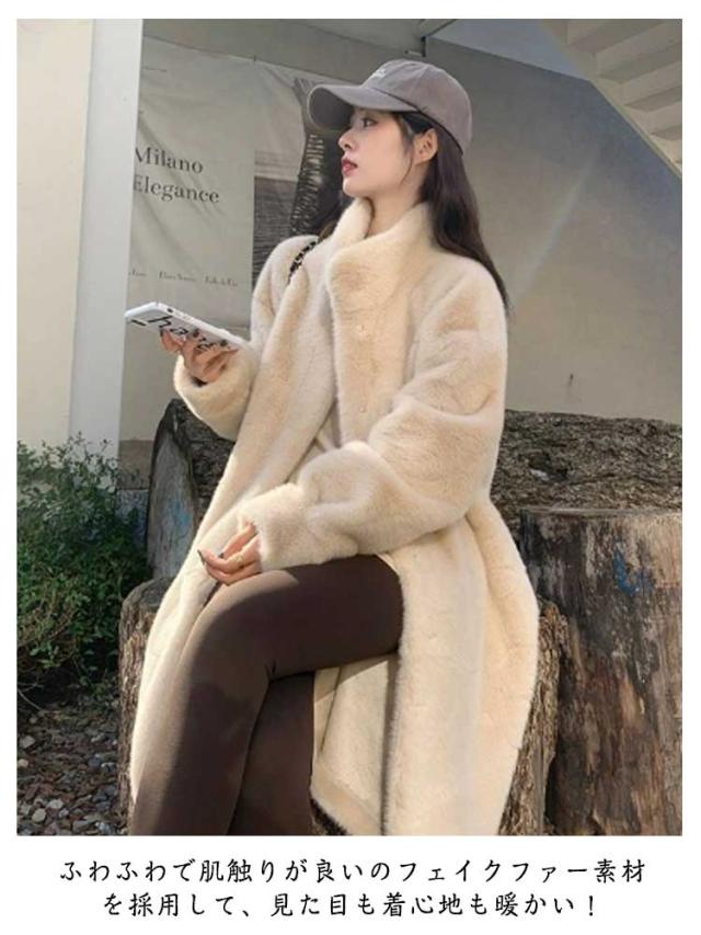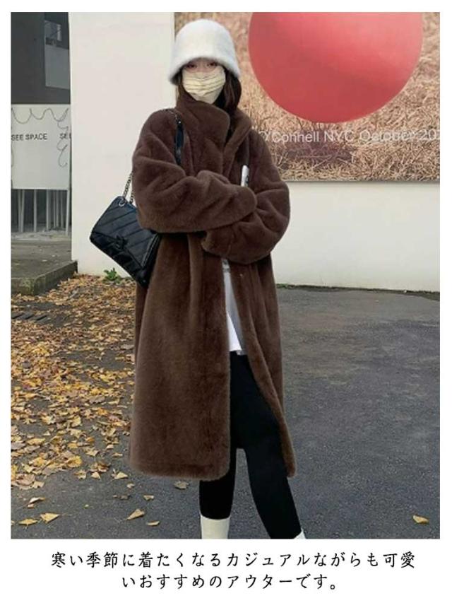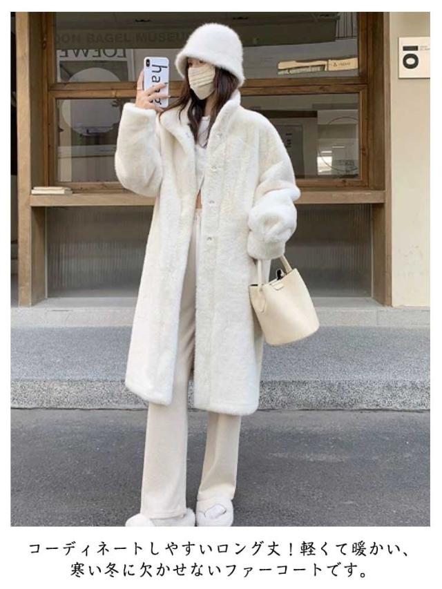 ファーコート ロング丈 冬 ファーコート レディース アウター もこもこ 防寒コート ボリュームファー フェイクファー もふもふ 暖かい 防寒 カジュアル ふわふわ ふんわり 大人可愛い スタンドカラー アイボリー ベージュ ブラウン