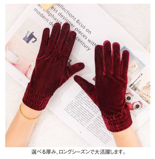 | きれいな光沢感が大人っぽい手袋 ベルベットの光沢がきれいにでています。 風を通しにくく、保温性に優れているので寒い冬でも快適にお使いいただけます。 選べる厚み、ロングシーズンで大活躍します。 | |