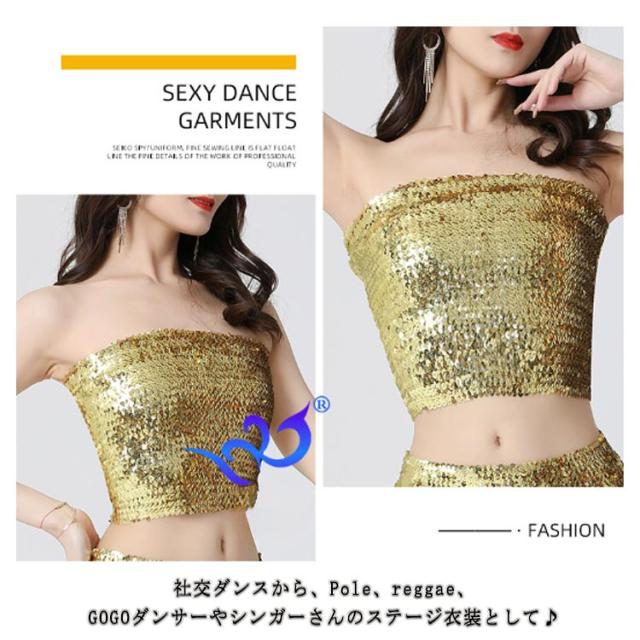 | ダンス・ステージ衣装にピッタリのスパンコールトップスが登場☆ かなり伸縮性があり、普段レディースSサイズ-Lサイズ位の方まで着用OK! 社交ダンスから、Pole、reggae、GOGOダンサーやシンガーさんのステージ衣装として♪ clubやイベント、発表会やパーティーでも、目立つこと間違い無し! もちろん1枚でも、インナーとしてチラっと見せても♪ | |