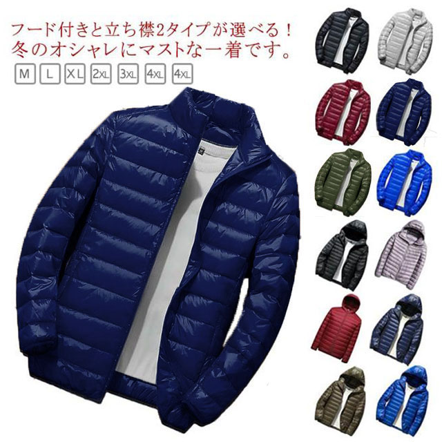 中綿コート 中綿ジャケット メンズ 中綿 立ち襟 フード付き ダウン風ジャケット ショート丈 厚手 コート インナージャケット 暖かい 中綿入り アウター 上着 羽織り ライトダウン 秋 冬 細身 スリム 防寒 防風 あったか 軽量 薄手 保温 紳士用 大きいサイズ 送料無料